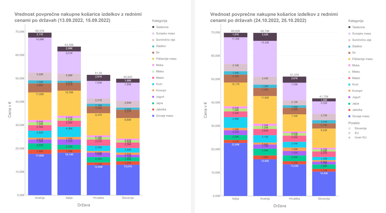 "Pocenitev vrednosti najcenejše košarice v Sloveniji neposredno povezujemo z učinki tako imenovanega 'mehkega' ukrepa vzpostavitve primerjalnika cen za 15 osnovnih skupin živil. Iz tega razloga se bo spremljanje v nadaljevanju tudi razširilo na več skupin živil," so še pojasnili za N1.