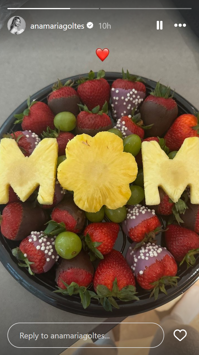 Objavila je dve fotografiji. Na prvi so slastne jagode, oblite s čokolado, na njih pa napis mama iz ananasa. Na drugi fotografiji pa je nasmejano pozirala s hčerko, njen obraz pa prekrila z emojijem srčka.