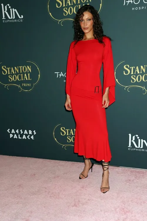 Bella Hadid je bila znova prava kameleonka na rdeči preprogi. Na večernem dogodku v Las Vegasu je presenetila s svojim živahnim in izvirnim slogom, ki je bil sicer navdihnjen z vintage stilom. Za ta dogodek je zvezdnica nosila ognjeno rdečo obleko s spuščenim pasom, ki je imela asimetrične zvonaste rokave in srebrno kvadratno sponko za pas.