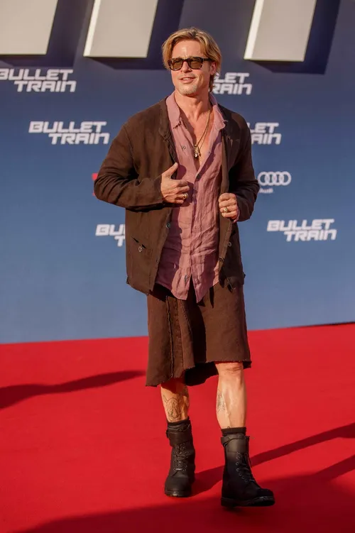 58-letni igralec je za ta dogodek izbral rjavo krilo, kombiniral pa ga je z rjavim suknjičem, pod katerim je nosil rožnato srajco. Obul je črne bulerje in pokazal noge, na katerih so vidne tetovaže. Sicer pa Brad ni prvi od zvezdnikov, ki so navdušeni nad trendom moškega nošenja kril. Med slednje spadajo še Harry Styles, Pete Davidson in Lewis Hamilton.