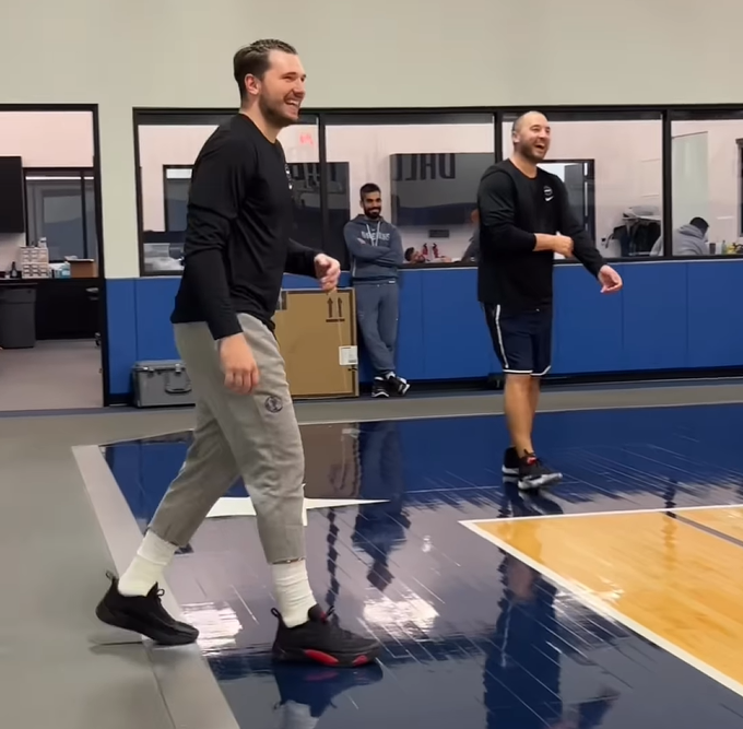 Košarkarji Dallasa so imeli nekaj več časa za trening, trenirali so namreč tudi v nedeljo. Luka Dončić, slovenski košarkarski zvezdnik in novopečeni očka, se je pri tem očitno zelo zabaval.