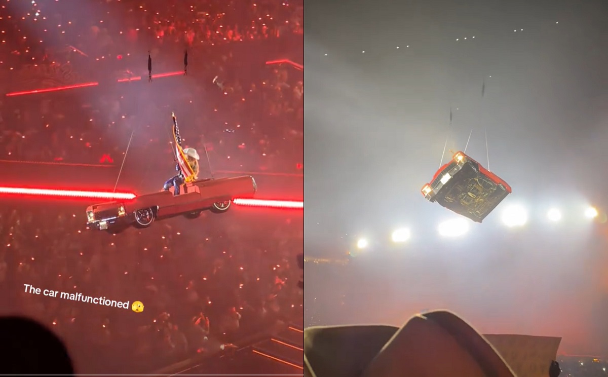 A šov ni minil brez tehničnih zapletov. 43-letna pevka je namreč med izvajanjem pesmi 16 Carriages z zadnjega albuma na stadionu NRG sedela v avtomobilu, ki je bil dvignjen nad občinstvo, ko se je rekvizit sredi nastopa začel nagibati v zraku.