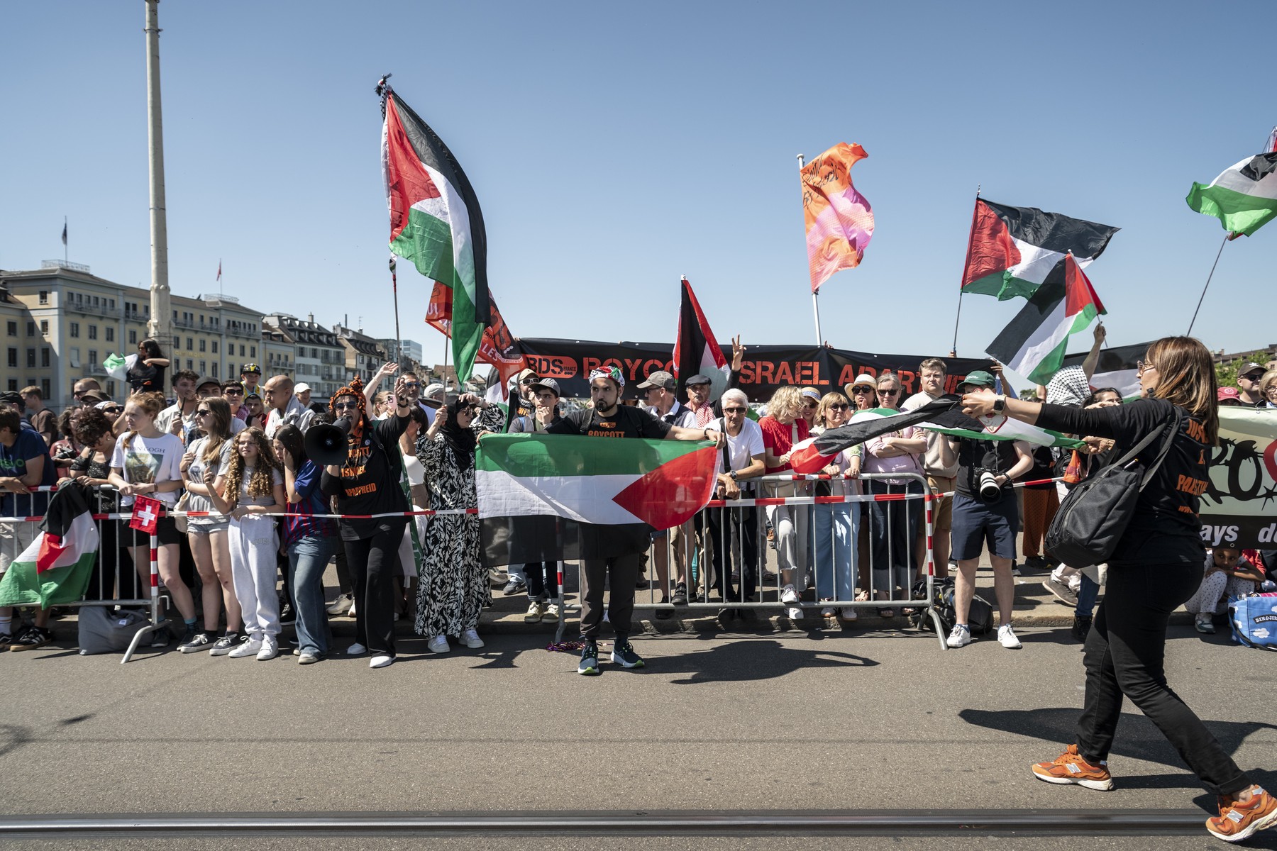 Zaradi občutljive situacije sicer tudi letošnja Evrovizija poteka pod poostrenim varnostnim nadzorom. Že v nedeljo, ko se je 37 letošnjih predstavnikov držav udeleženk sprehodilo po turkizni preprogi, ki je bila dolga kar 1,3 kilometra in je potekala od mestne hiše v Baslu do evrovizijske vasi, so Izraelko Raphael na paradi pričakali podporniki Palestine s propalestinskimi transparenti.