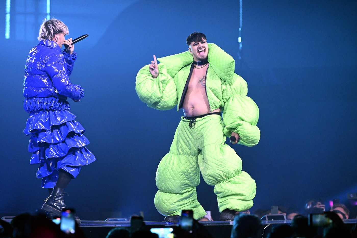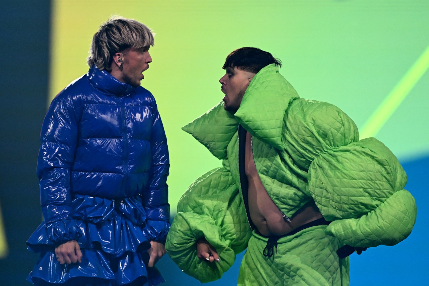 Zmagovalca glasov ljudstva lanske in predlanske Evrovizije, Hrvat Baby Lasagna in Finec Käärijä, sta v skupni točki razvnela občinstvo finala v Baslu.
