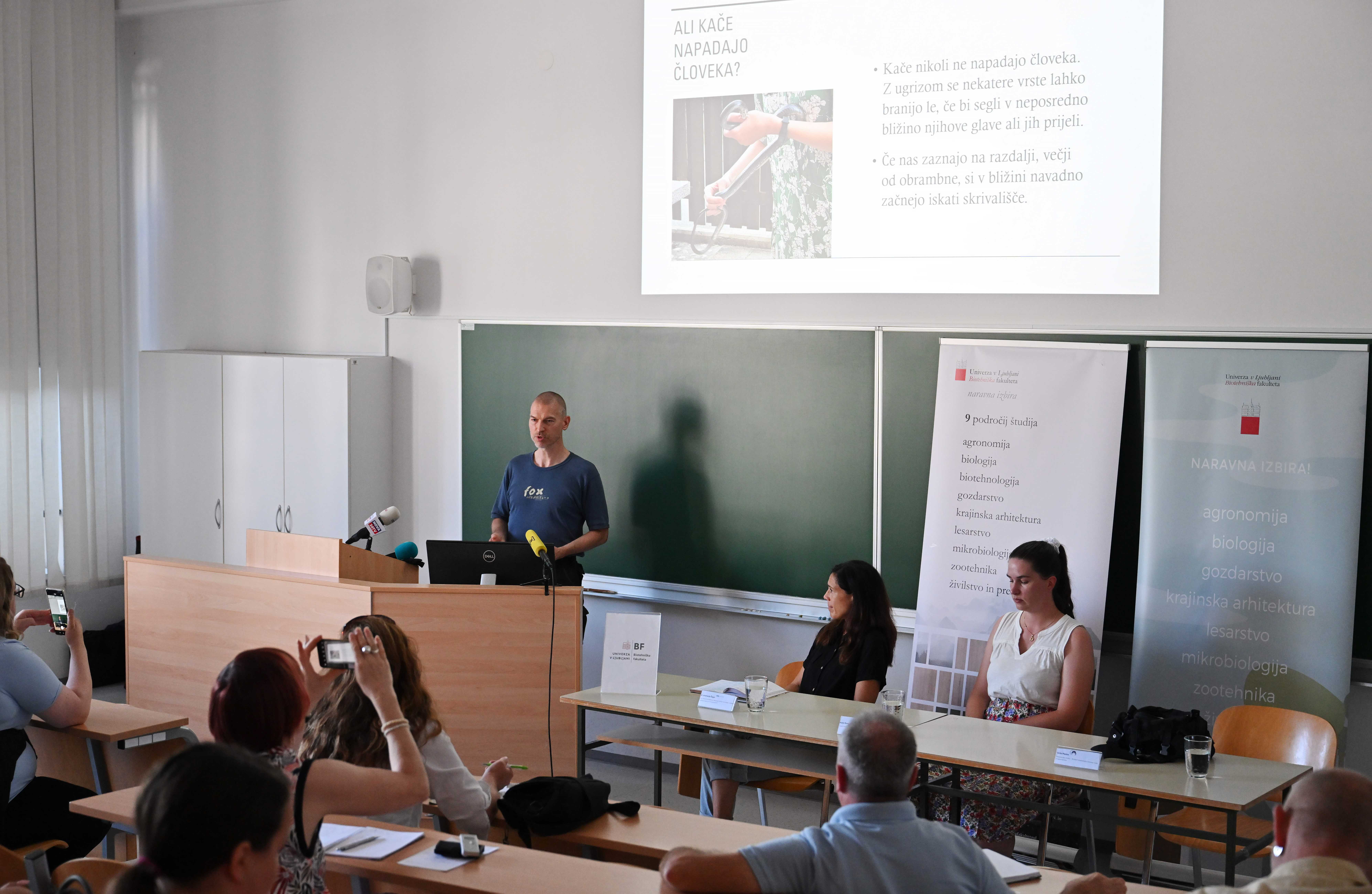 "Kača nikoli ne napade človeka. Kača napade samo plen," je dejal strokovnjak za kače Griša Planinc, vodja projekta Kačofon, na novinarski konferenci strokovnjakov z Biotehniške fakultete (BF), Nacionalnega inštituta za biologijo (NIB) in Herpetološkega društva.