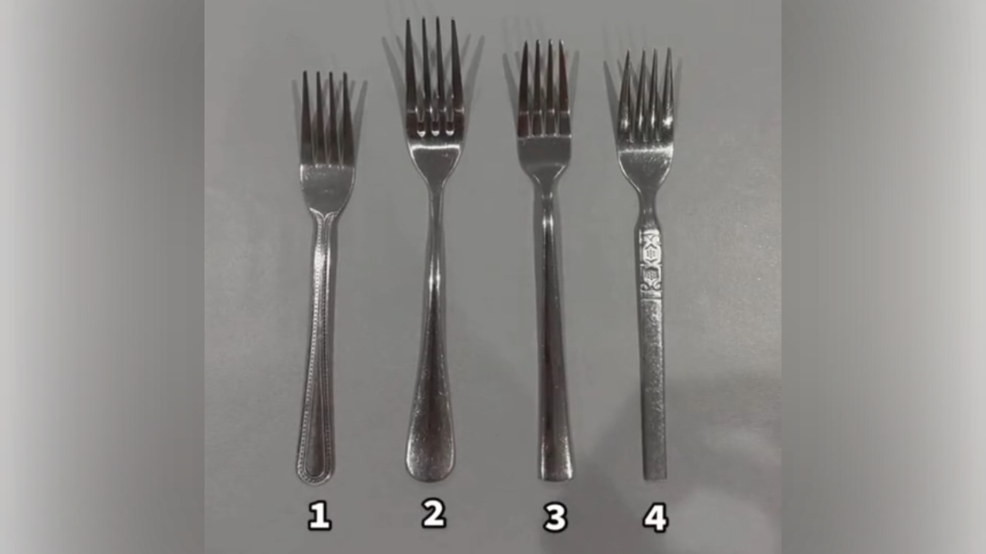 Tiktoker z vzdevkom Odd.Ballz, katerega področje je psihologija, je na svojem profilu objavil fotografijo štirih vilic, ki se malce razlikujejo po velikosti, obliki držajev, vzorcev na njih ter dolžini rogljev.
