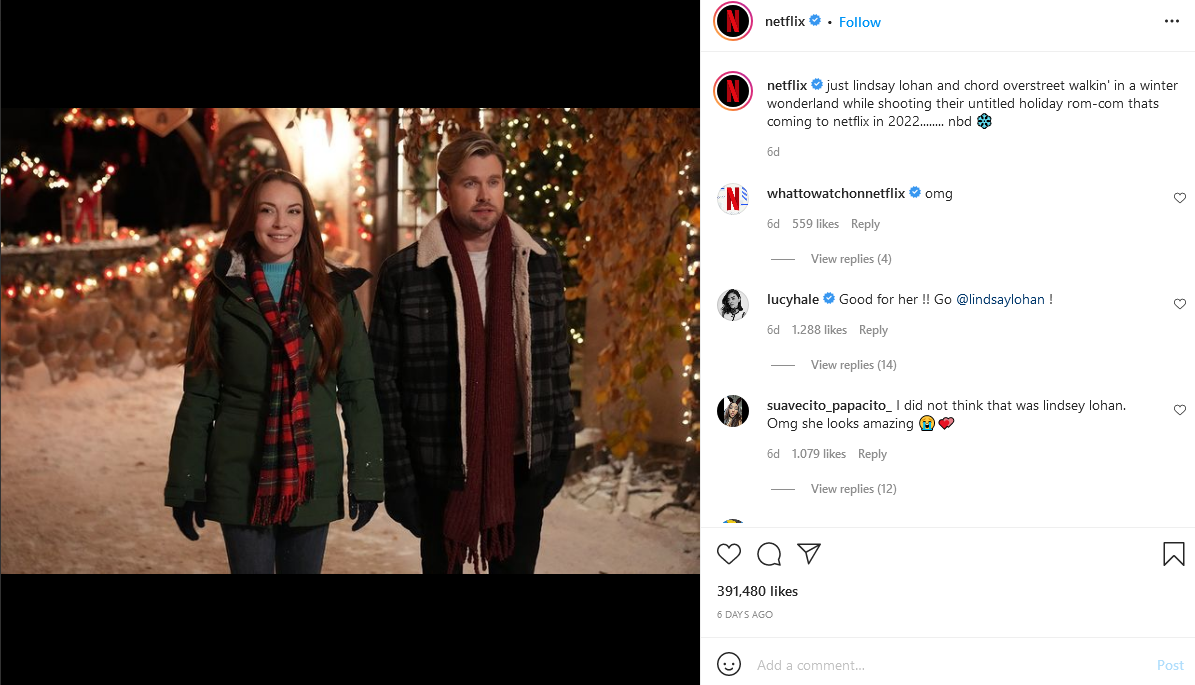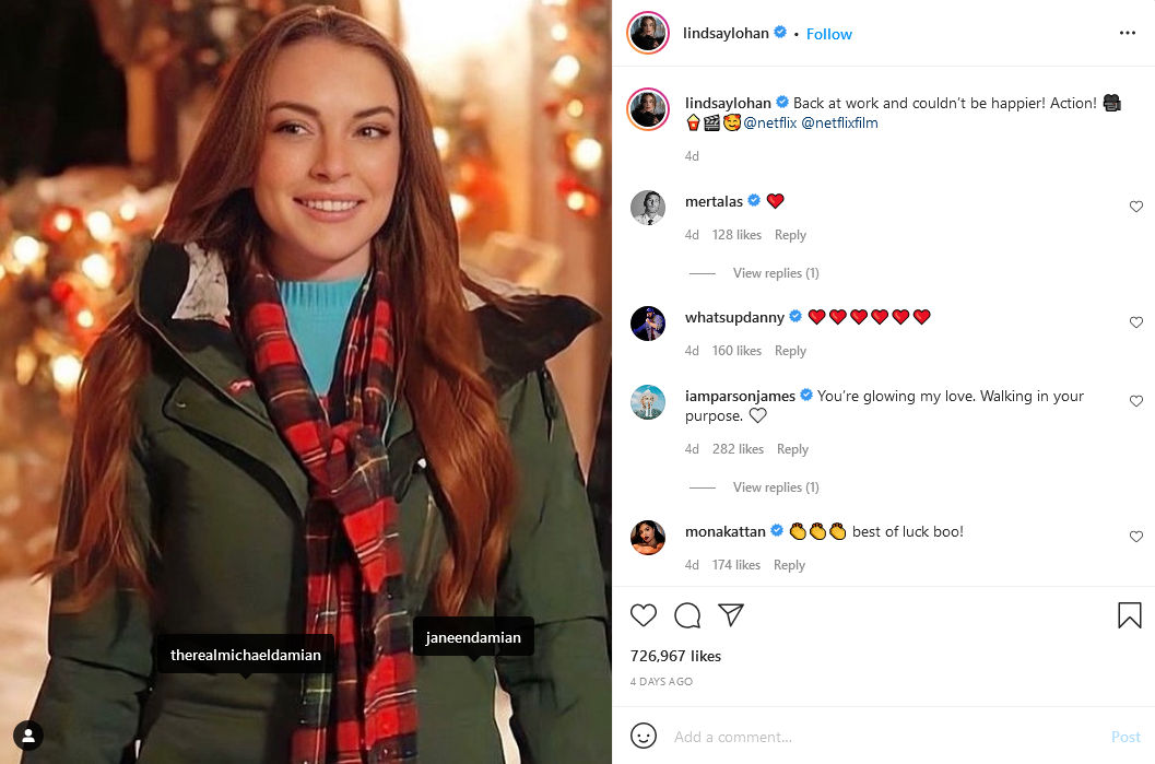 Z glavno vlogo v filmu se je na svojem profilu na Instagramu pohvalila tudi Lindsey, ki je ob svoji fotografiji zapisala, da se vrača na delo in da je nadvse srečna.