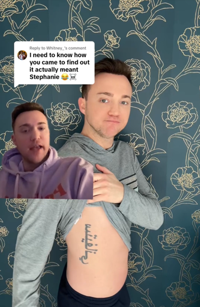V videu, objavljenem na TikToku, je razkril, kako je spoznal, kaj njegova tetovaža v resnici pomeni. Povedal je, da je obiskal klub v družbi prijatelja, ki je bil v razmerju z arabsko govorečim dekletom.
