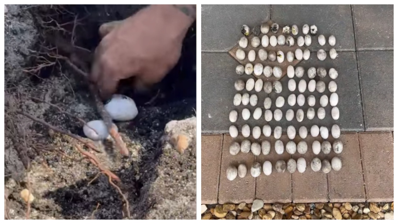 Ko so na kraj dogodka prispeli strokovnjaki za prostoživeče živali, so hitro prepoznali vir nenavadnega odkritja – šlo je za jajčeca legvanov, invazivne vrste, ki se v tej ameriški zvezni državi hitro širi. Strokovnjaki so izkopali kar 98 jajc, skritih v prepletenih rovih, ki so jih ustvarile tri samice.