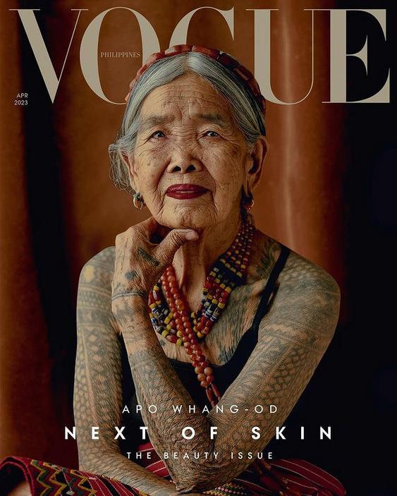 Pri reviji Vouge so se namreč odločili, da bo na aprilski naslovnici mojstrica tetoviranja Apo Whang-Od, ki prihaja iz gorske vasice Buscalan na Filipinih, severno od prestolnice Manile. Ob tej priložnosti so tudi zapisali njeno zgodbo. "Apo Maria Whang-Od Oggay simbolizira moč in lepoto filipinskega duha. Je zadnja mojstrica tetoviranja svoje generacije, tetovirala je simbole plemena Kalinga na tisoče ljudi, ki so romali v Buscalan," so na družbenem omrežju Instagram zapisali ob sliki naslovnice. Sama se je umetnosti tetoviranja že v najstniških letih začela učiti od svojega očeta, ki je znanje prenesel nanjo, poroča spletni portal CNN Style.