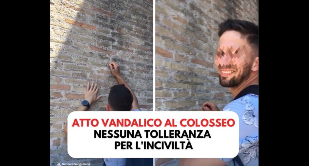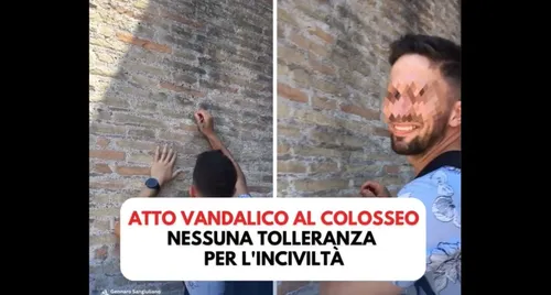 Včeraj popoldne so karabinjerji sporočili, da so po pritožbi uprave parka Kolosej identificirali "osebo, osumljeno, da je odgovorna za vrezovanje lastnega imena in imena partnerke v zid Koloseja", in ugotovili, da gre za par, "moškega in žensko, ki živita v Angliji". Dodali so, da so njuno identiteto ugotovili na tradicionalen način in s primerjavo fotografij ter da bodo sprožili preiskavo. Poudarili so tudi, da osumljenec velja za nedolžnega vse do izreka sodbe.