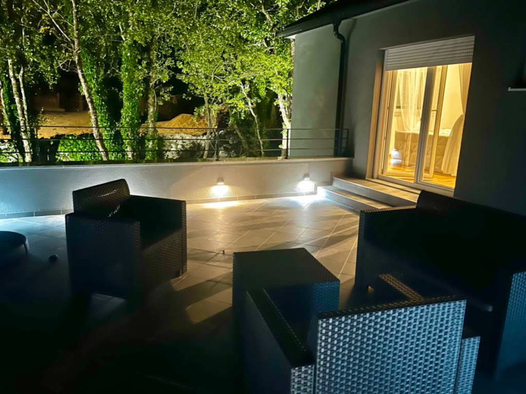 Popolnoma je tudi že opremljena zunanja kuhinja, kjer bosta odvetnica in mož Nikola Vrzić, ki je sicer kot pomorščak zaposlen v nizozemskem podjetju, prirejala večerne zabave in druženja. Odvetnica je ob predstavitvi hiše tudi priznala, da je bilo oblikovanje in urejanje opreme za dom pogosto zelo naporno, saj njen mož veliko časa preživi na ladji.