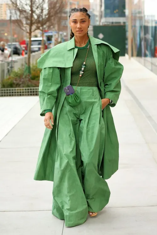 Barvna usklajenost je trend, ki je prisoten že nekaj časa, še posebej pogosto smo ga videvali v kombinaciji s hlačnimi kostimi. Ta trend ostaja tudi letos, a ga lahko nadgradimo tako, da izberemo opazen barvni odtenek v družbi širokih krojev.