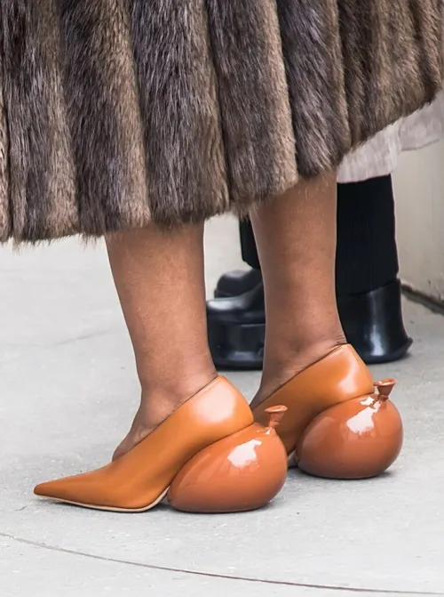 Čevlji so povsem v središču pozornosti. Tokrat so modne gurujke izbrale nenavadne oblike in detajle, kot so čevlji s peto v obliki balonov znamke Loewe. Opazili smo tudi obilico čevljev z debelimi podplati in dekorativnimi elementi.