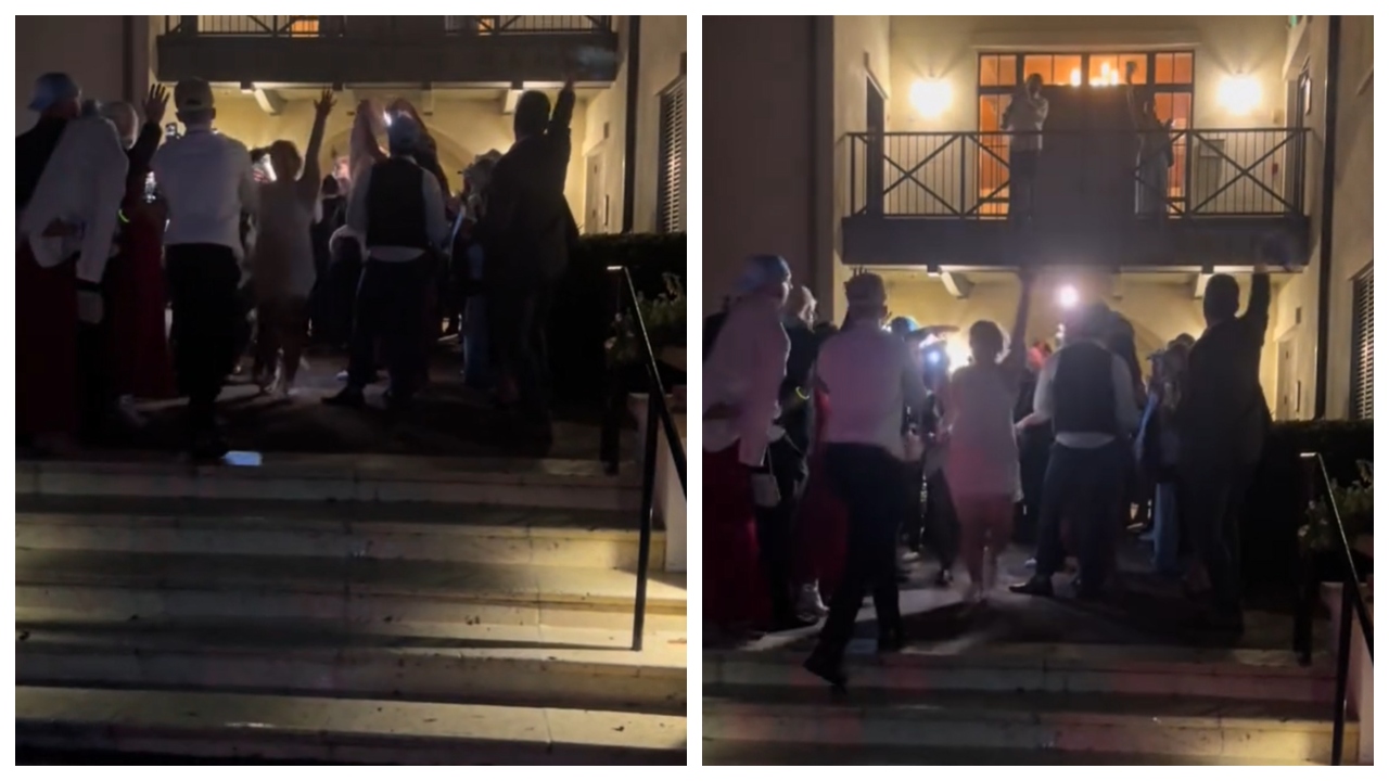 V zdaj že viralnem videu, objavljenem na TikToku, lahko vidimo, kako se Day veselo prebija skozi množico svatov, pri tem pa za roko drži moškega v obleki, ki pa ni bil njen mož.
