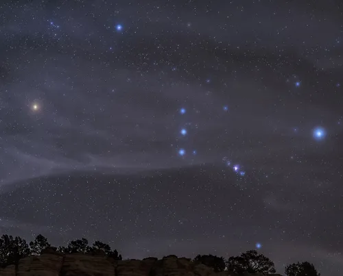 Okoli 600 svetlobnih let oddaljena Betelgeza je ena najsvetlejših zvezd na zimskem nočnem nebu in tudi sorazmerno lahko jo je najti.