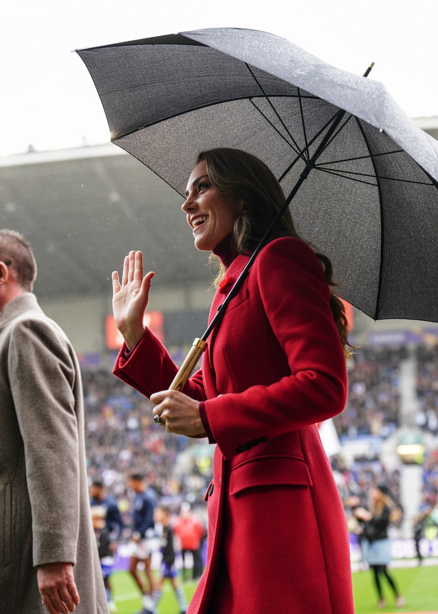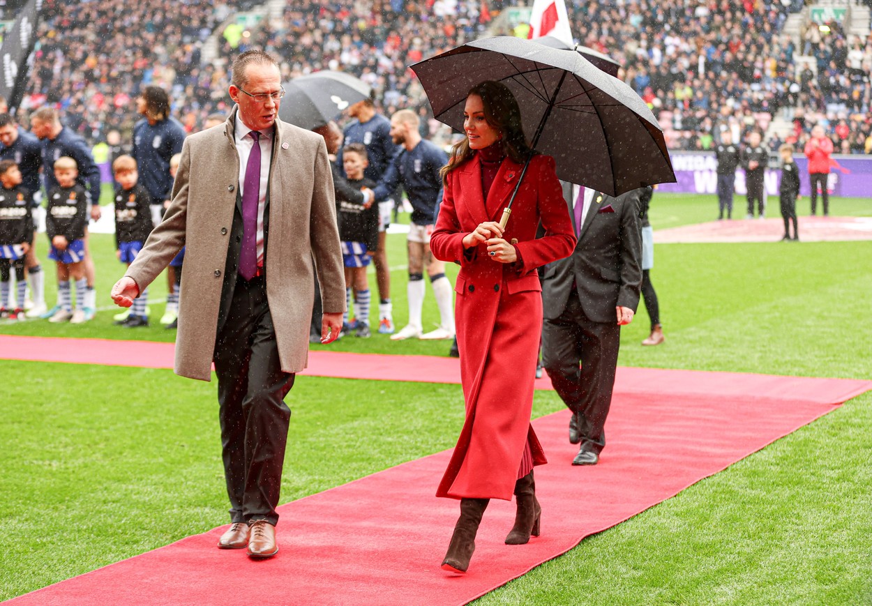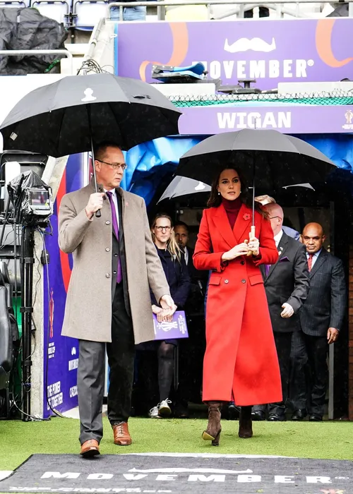 Nedavno pa si je ogledala tekmo ragbija in za to priložnost izbrala rdeč plašč, ki je bil v hipu všeč tudi modnim kritikom.