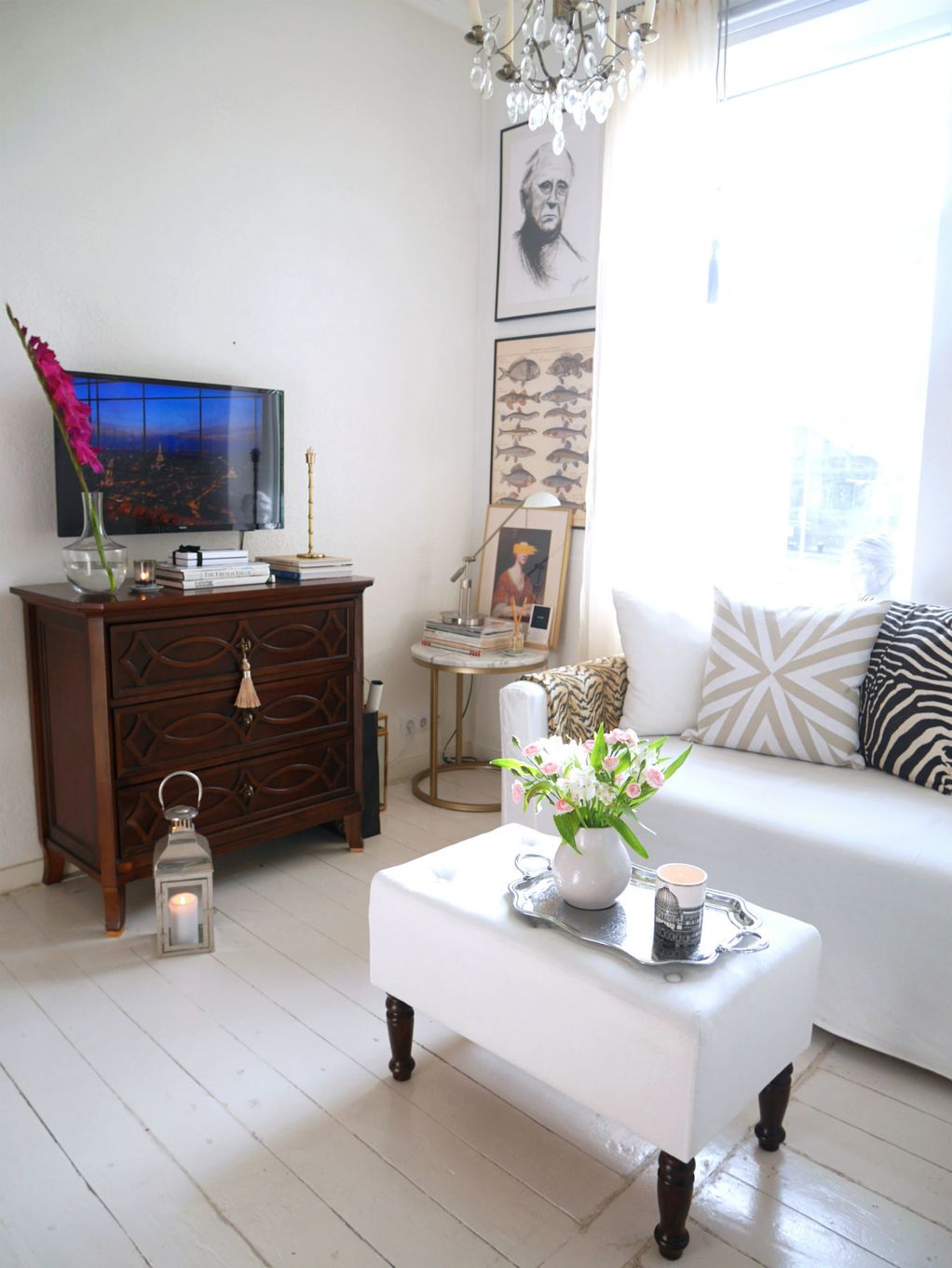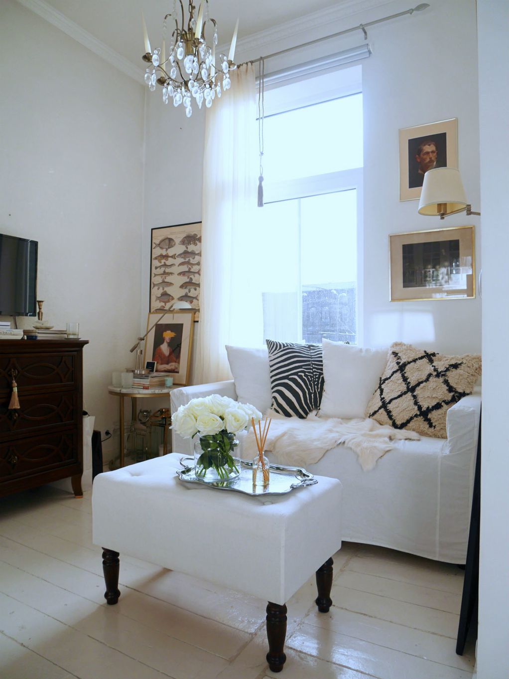 Ko gre za majhne prostore, kot je njen, se ji zdi pomembno uporabljati svetle tone, da bo prostor videti večji. Sama je uporabljala veliko bele barve in skoraj vse njeno pohištvo je belo. Belino je razbila tako, da je ponekod dodala nekaj barve in uporabila različne materiale.