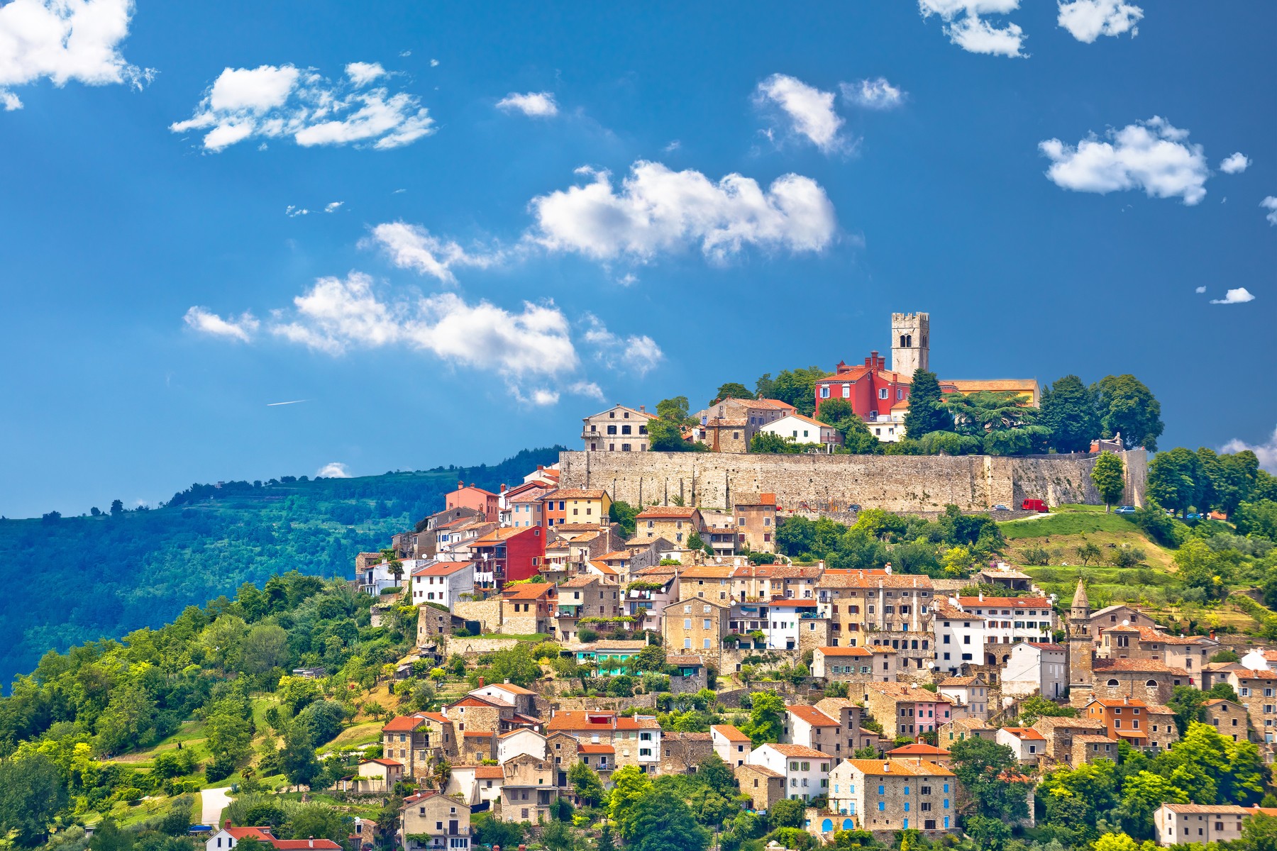 Če se boste odpravili v notranjost Istre, boste vstopili v svet srednjeveških vasic na hribih, vinogradov in gozdov, polnih tartufov. Srednjeveški Motovun, ki se vzpenja po pobočju nad vinogradi, je eno najbolj privlačnih izhodišč za raziskovanje. Od tu je le kratka vožnja do Grožnjana, prizorišča poletnih koncertov na prostem, kjer si lahko ogledate umetniške ateljeje, ki so se odprli v zadnjih desetletjih. Eden najbolj privlačnih načinov raziskovanja notranjosti Istre je pohodništvo ali kolesarjenje po Parenzani, ki poteka po vijugasti poti opuščene železniške proge, dolgi približno 130 kilometrov.