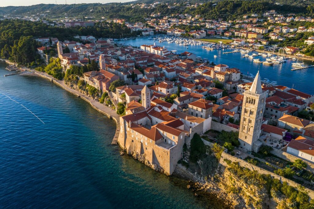 Kraljevi obiskovalci so bili očarani ne le nad čistimi vodami Raba. Enako privlačna je tudi izvrstna in lepo ohranjena srednjeveška arhitektura mesta Rab, ki vključuje štiri romanske zvonike.