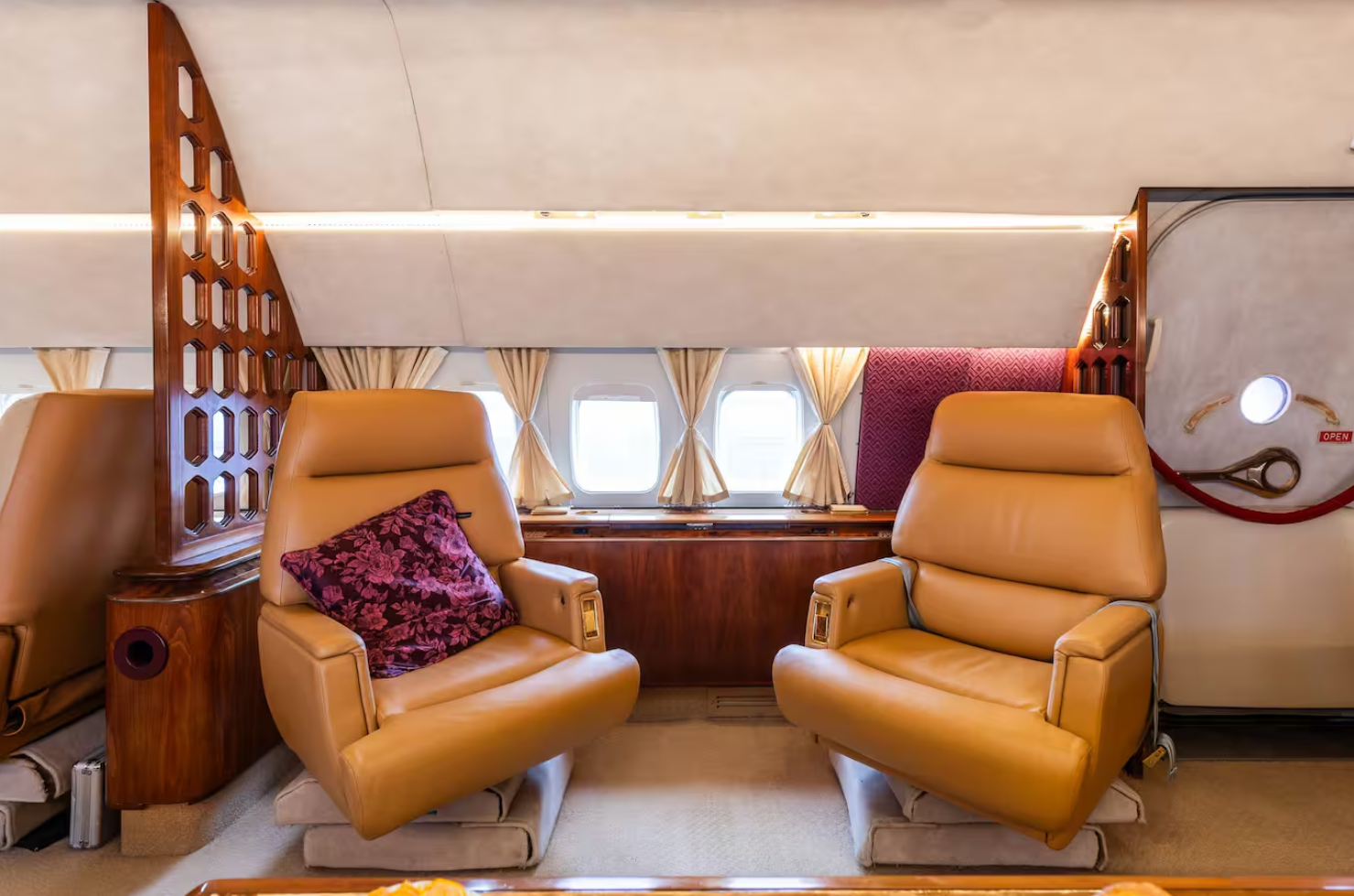 Prostor obsega trup letala z dvema dnevnima prostoroma, spalnico z zakonsko posteljo, tremi stranišči, prho in popolnoma opremljeno kuhinjo.