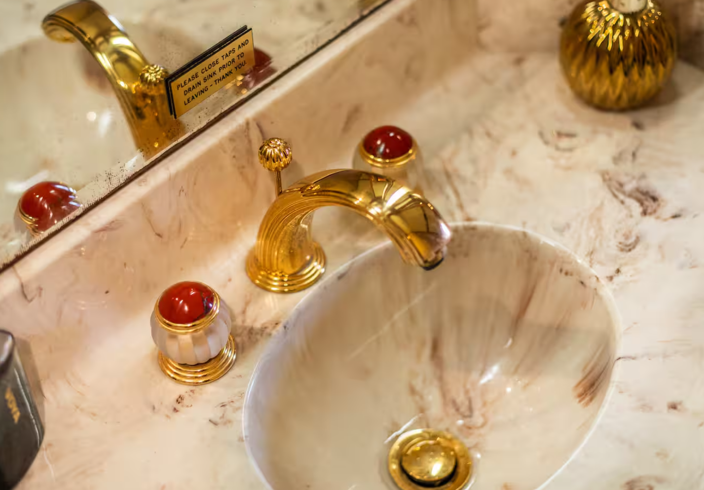 Več"Izjemen prostor z zlatimi detajli, orehovim lesom in kristali"