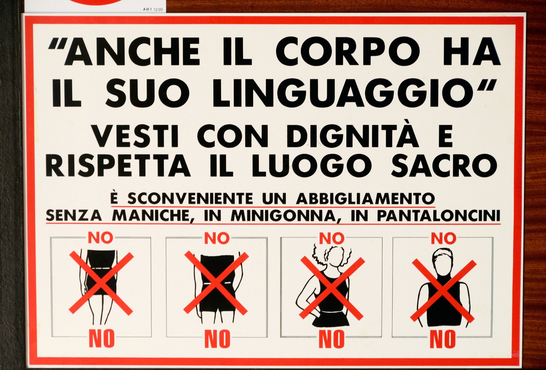 Za obisk mnogih italijanskih "top" znamenitosti boste morali biti primerno oblečeni. Stroga pravila pa veljajo tudi drugod po državi.