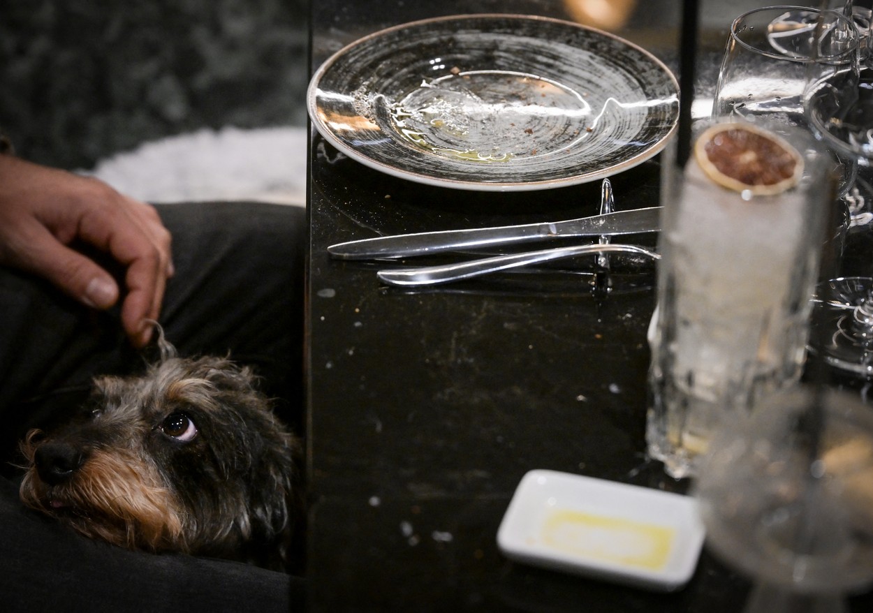 Natakarji v rokavicah strežejo psom z enako skrbnostjo kot ljudem. Prednje postavljajo lepo oblikovane sklede, v katerih je posebej aranžirana in pripravljena pasja hrana, od kuhanega jajca s pirejem iz graha do ribe z rikoto in bučkami.