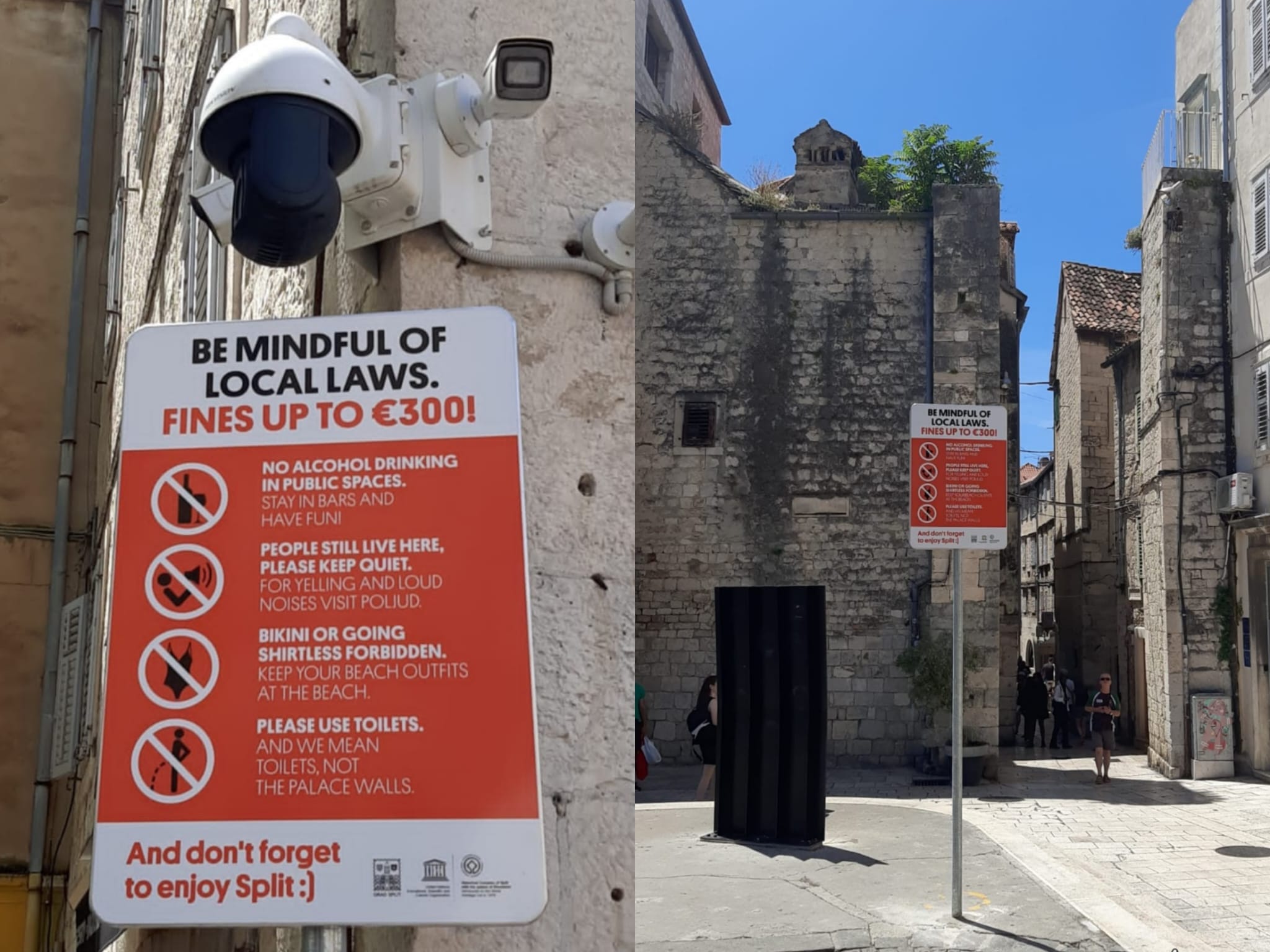 Na najbolj obiskanih točkah v Splitu so postavili informacijske table, ki obiskovalce "opominjajo", česa ne smejo početi na ulicah. Zaostrena pravila obnašanja so opisana v angleškem jeziku, v primeru kršitve pa obiskovalce lahko doleti globa do tristo evrov.