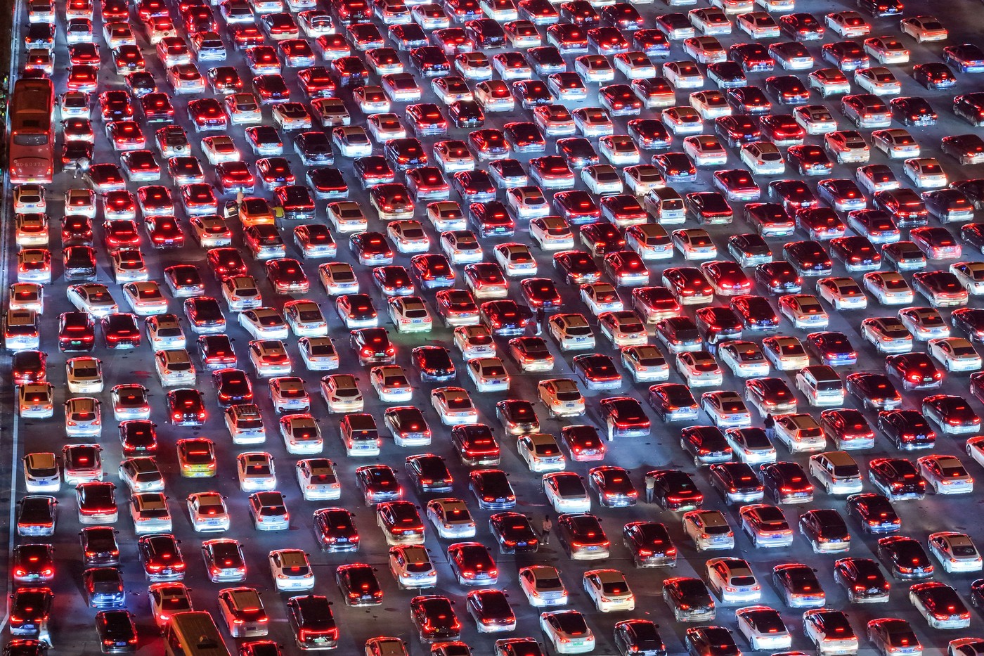 Fotografije iz zraka prikazujejo gnečo, ki se je nabrala pred največjo kitajsko cestninsko postajo Wuzhuang. Do postaje vodi več kot 30 voznih pasov, in čisto vsak se je lesketal v soju avtomobilskih luči.