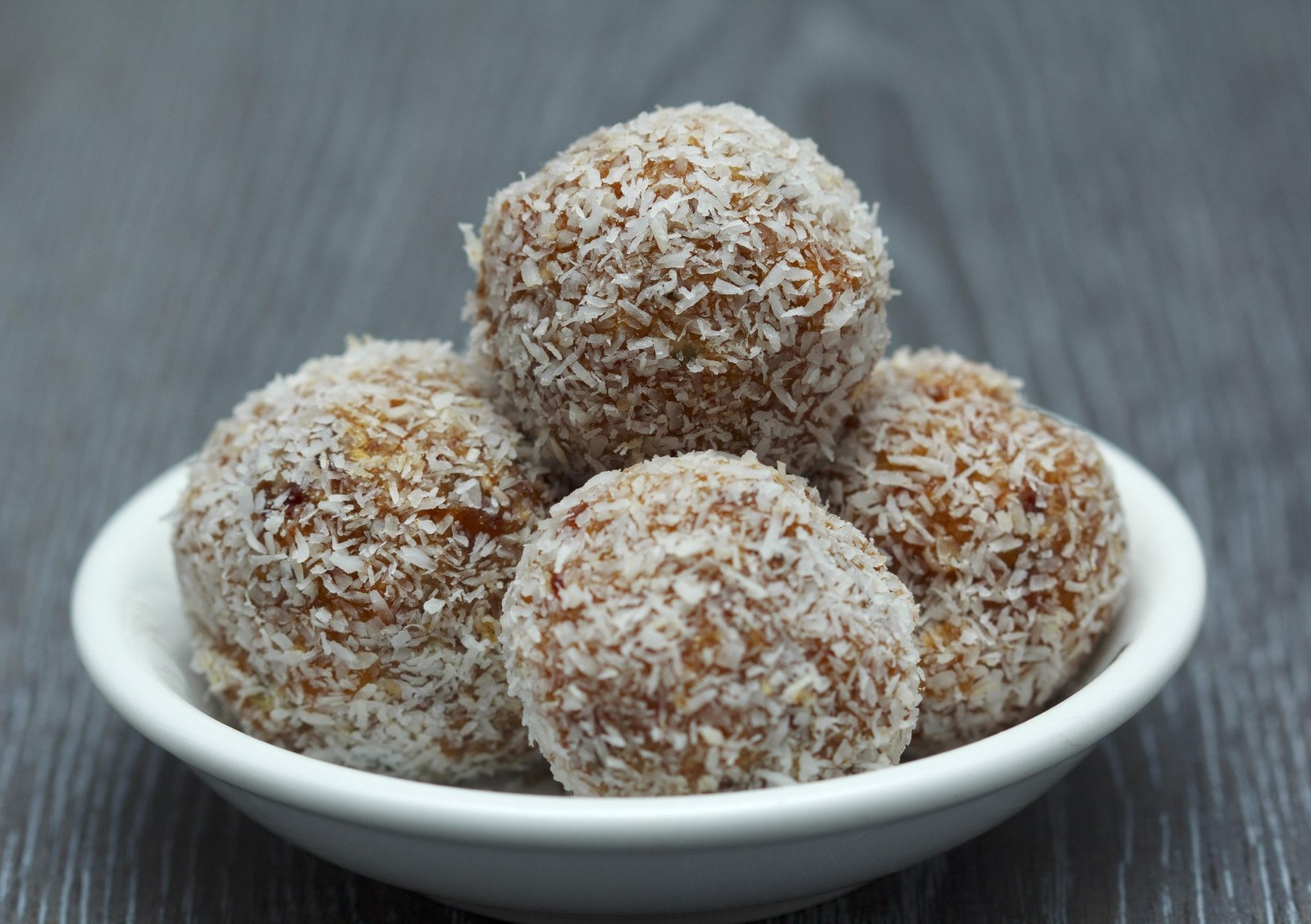 Zmešajte vse sestavine in dodajte toliko kokosa, da dobite zmes, iz katere boste oblikovali kroglice.
