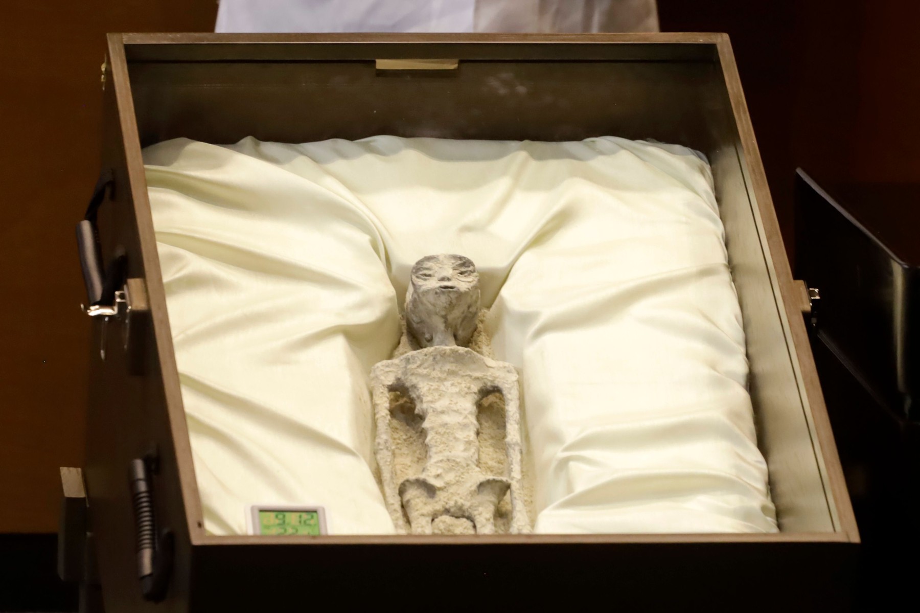 V mehiškem kongresu so politikom pokazali domnevna trupla Nezemljanov. Dve majhni trupli, šlo naj bi za Nezemljane, so našli v Cuscu v Peruju. Njuna predstavitev v Mexico Cityju pa je navdušila teoretike zarot o neznanih letečih predmetih, piše britanski The Independent.