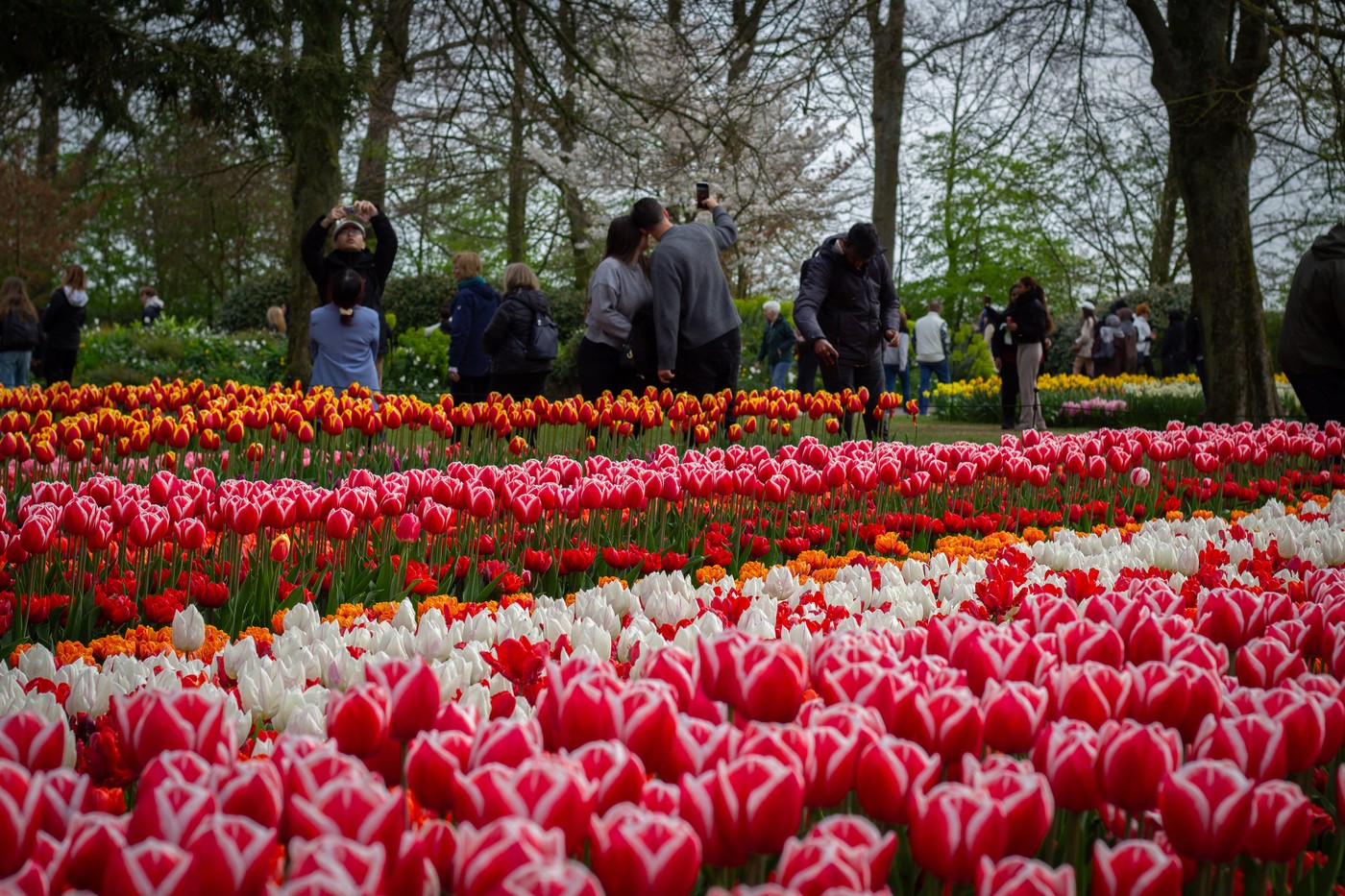 V cvetličnem vrtu Keukenhof v mestu Lisse na Nizozemskem je sezona tulipanov na vrhuncu in tako si več deset tisoč obiskovalcev z vsega sveta si te dni ogleduje več kot 800 različnih vrst tulipanov.