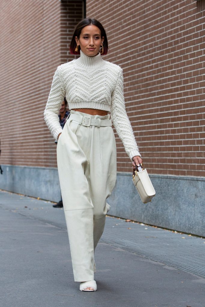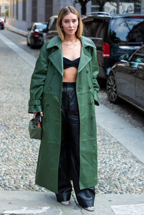 Si upate v en videz združiti več trendov? Pogled na ulice Milana je razkril, da je to zadetek v polno! Dama, ki je obiskala tamkajšnje tedne mode, je v svoj videz združila kar nekaj trendov - ruta je gotovo eden med najopaznejšimi. Poleg tega oprijet korzet zelo lepo dopolni plašč širokega kroja, pika na i pa so čevlji s koničastim zaključkom.