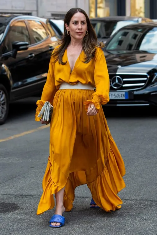Kos, ki je v omari ostal še od poletja, je zelo uporaben tudi jeseni. Dokler vreme dopušča, lahko dolgo lahkotno obleko nosimo samostojno z le nekaj preprostimi modnimi dodatki, kot so širok pas, toaletna torbica in sandale v nepričakovani barvi. Jeseni lahko temu videzu enostavno dodamo suknjič.