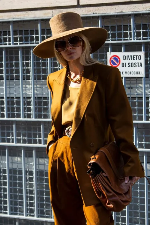 Ženska moda se že dolgo spogleduje s kroji, ki so sicer bolj pogosti v moški garderobi - tega se je prva domislila prav ikonična Coco Chanel. Tudi to sezono so vloge spolov zabrisane, dame pa se zelo rade pojavljajo v enobarvnih kostimih. Če temu videzu dodamo še klobuk in nakit, bo kombinacija lepo dopolnjena.