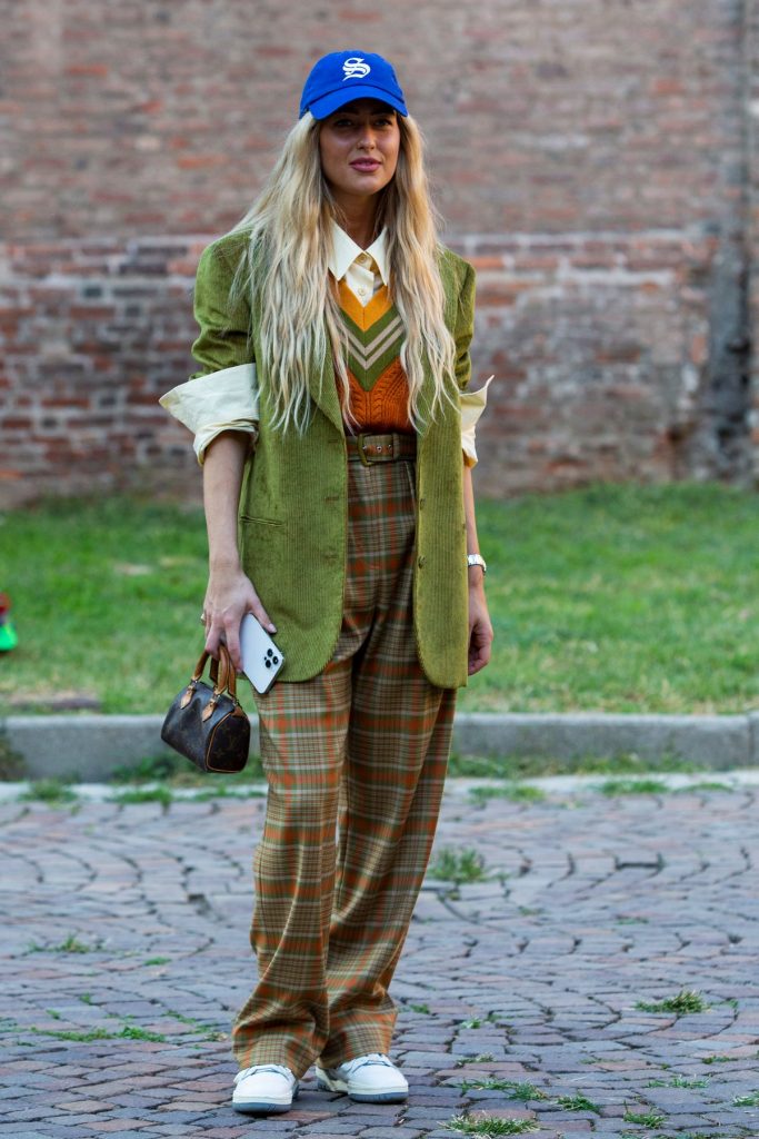 Moda je lahko zelo igriva, kar ta videz v popolnosti izraža. Gre za čudovito mešanico različnih stilov, ki so barvno usklajeni. Celoten videz deluje zelo retro, barve so primerne sezoni, da vse skupaj ni preveč dolgočasno, pa je dodana modra kapa s ščitnikom in ustvari kontast med retro pridihom in sodobnim športnim videzom.