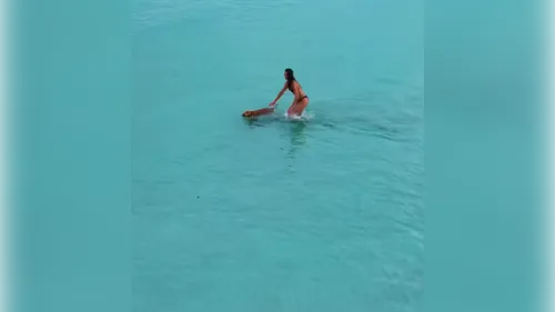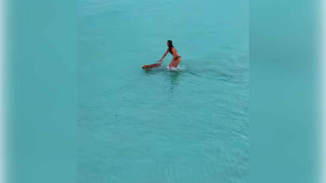 Medtem ko je s psičko Kiki uživala v plavanju, je v vodi nenadoma zagledala nekaj, kar ji je pognalo adrenalin po žilah. Njen odziv je hitro postal vir občudovanja na družbenih omrežjih.