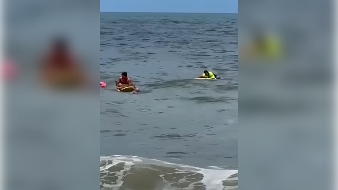 Reševalci iz vode so iz razburkanega morja pomagali neobičajnemu plavalcu.