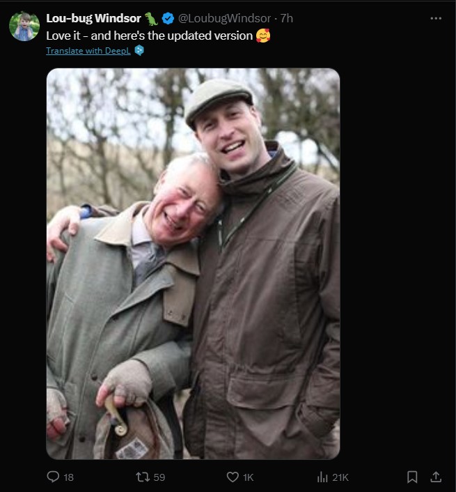 Eden izmed komentatorjev pa je objavil "posodobljeno verzijo" fotografije Karla in Williama.