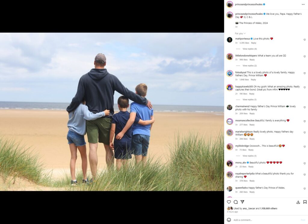 Fotografija je pritegnila sledilce profila britanske kraljeve družine na tem omrežju in mnogi so kralju in princu, ki je prav tako oče, čestitali za praznik.