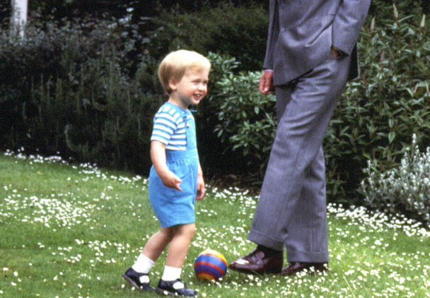 Na fotografiji sta William in takratni valižanski princ ki se igrata z žogo.