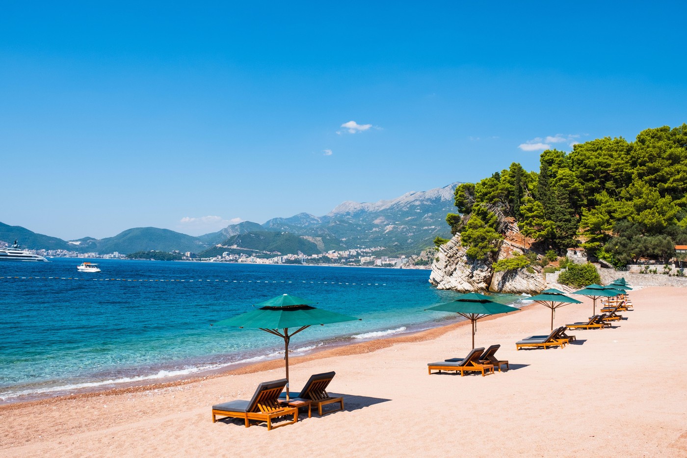 Na plaži ob luksuznem črnogorskem hotelu je cena za najem senčnika in dveh ležalnikov višja, kot bi ponekod stala nočitev.