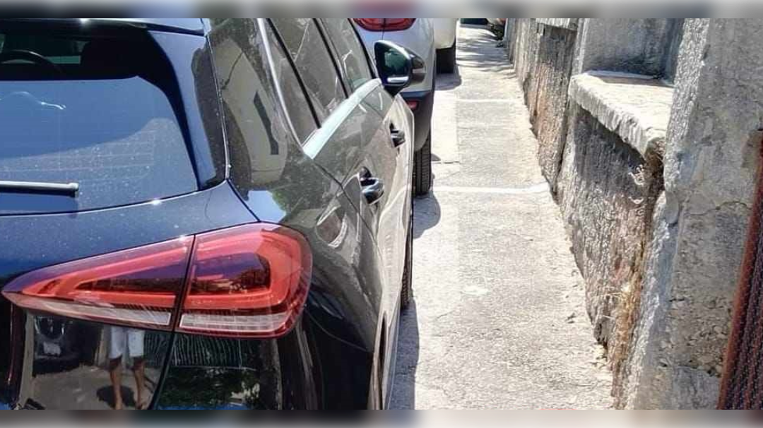 Prikazuje osebno vozilo, parkirano pred vhodom na zasebno dvorišče, pri čemer je bilo vozilo z žico pritrjeno na dvoriščna vrata. Ob tem je bilo na vetrobranskem steklu avtomobila nalepljeno sporočilo: "Zaklenil sem vaš avto, ker nam je zaprl vhod!"