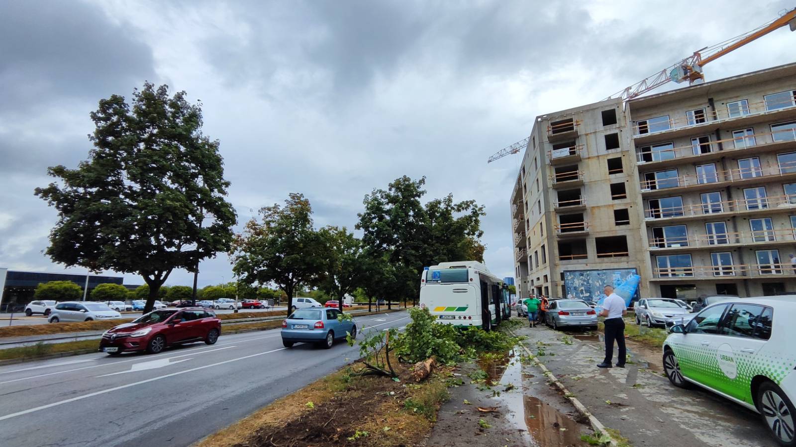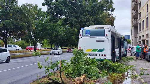 Drevo, ki ga je izruvalo neurje, padlo na avtobus s potniki (FOTO & VIDEO)