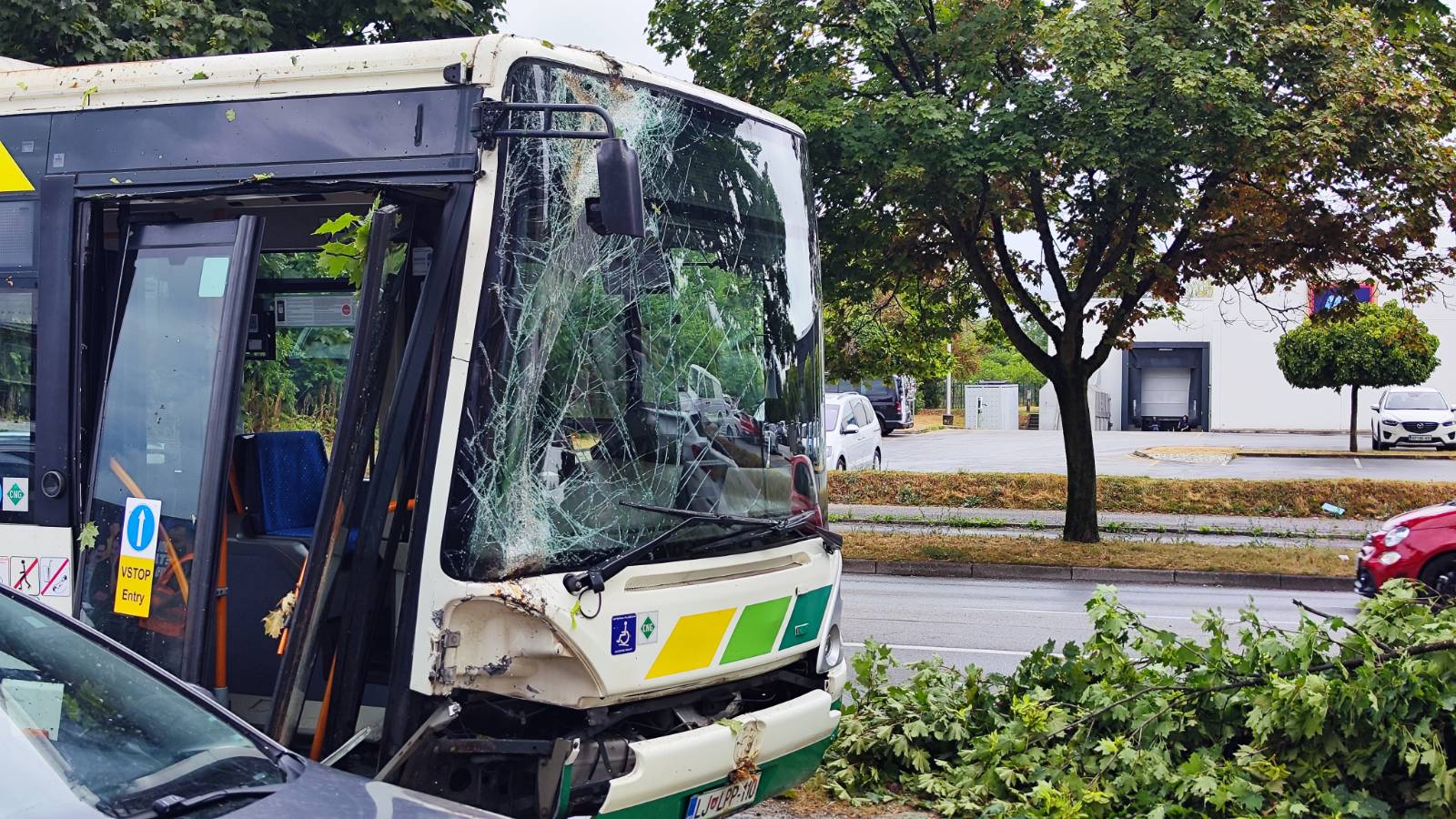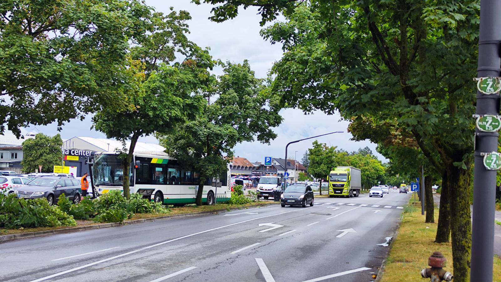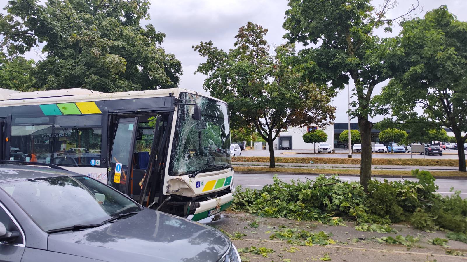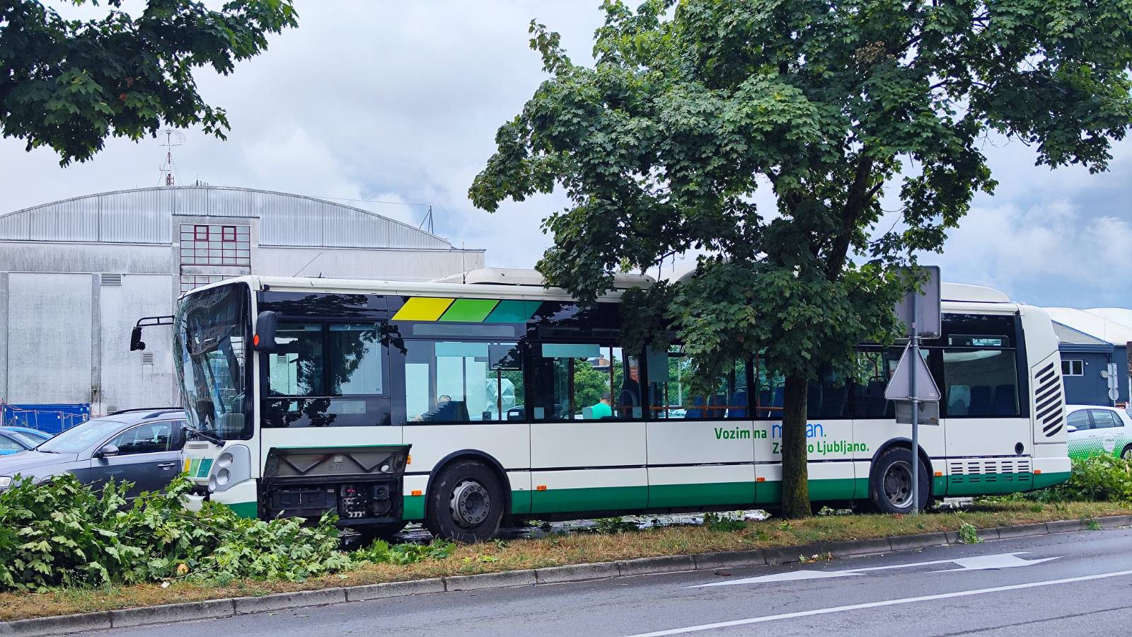 Na Kranjčevi ulici v Ljubljani je na avtobus javnega potniškega prometa med vožnjo padlo v neurju izruvano drevo. Nobeden od potnikov, ki so bili tedaj v avtobusu, ni bil poškodovan.