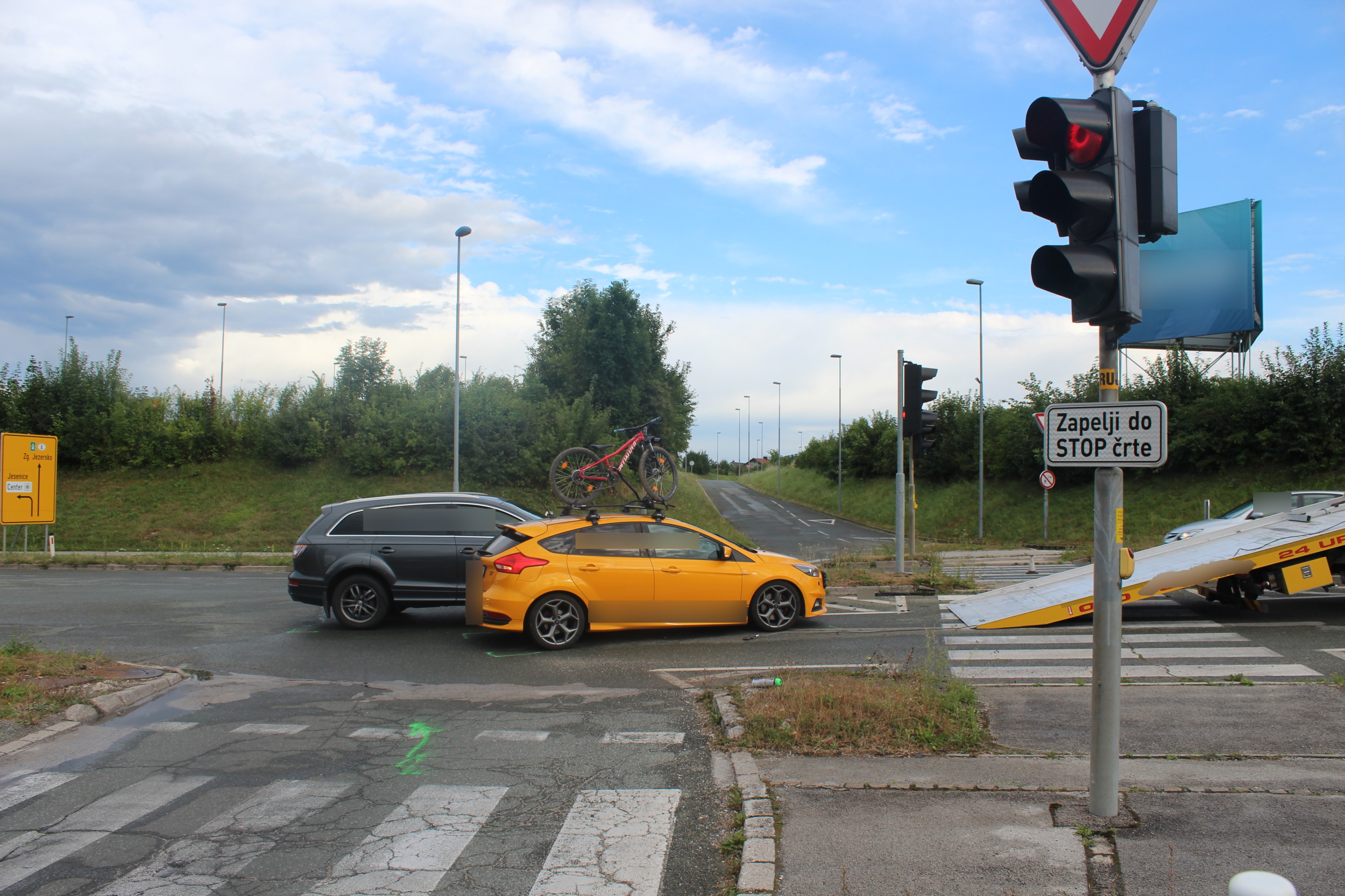 Po podatkih, ki jih imajo na PU Kranj, je voznik oranžnega focusa pripeljal po Ljubljanski cesti iz smeri Labor do semaforiziranega križišča s cesto Delavski most-Škofja Loka, kjer je v križišču želel zaviti levo na Delavski most. Po cesti Delavski most-Škofja Loka pa je v tem času do semaforiziranega križišča pripeljal voznik sivega audija. Vozili sta trčili.