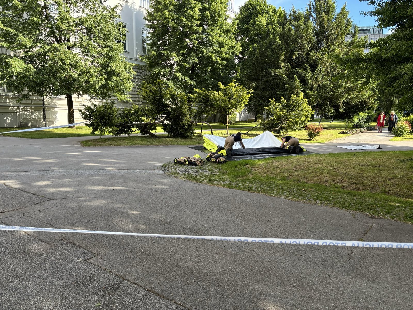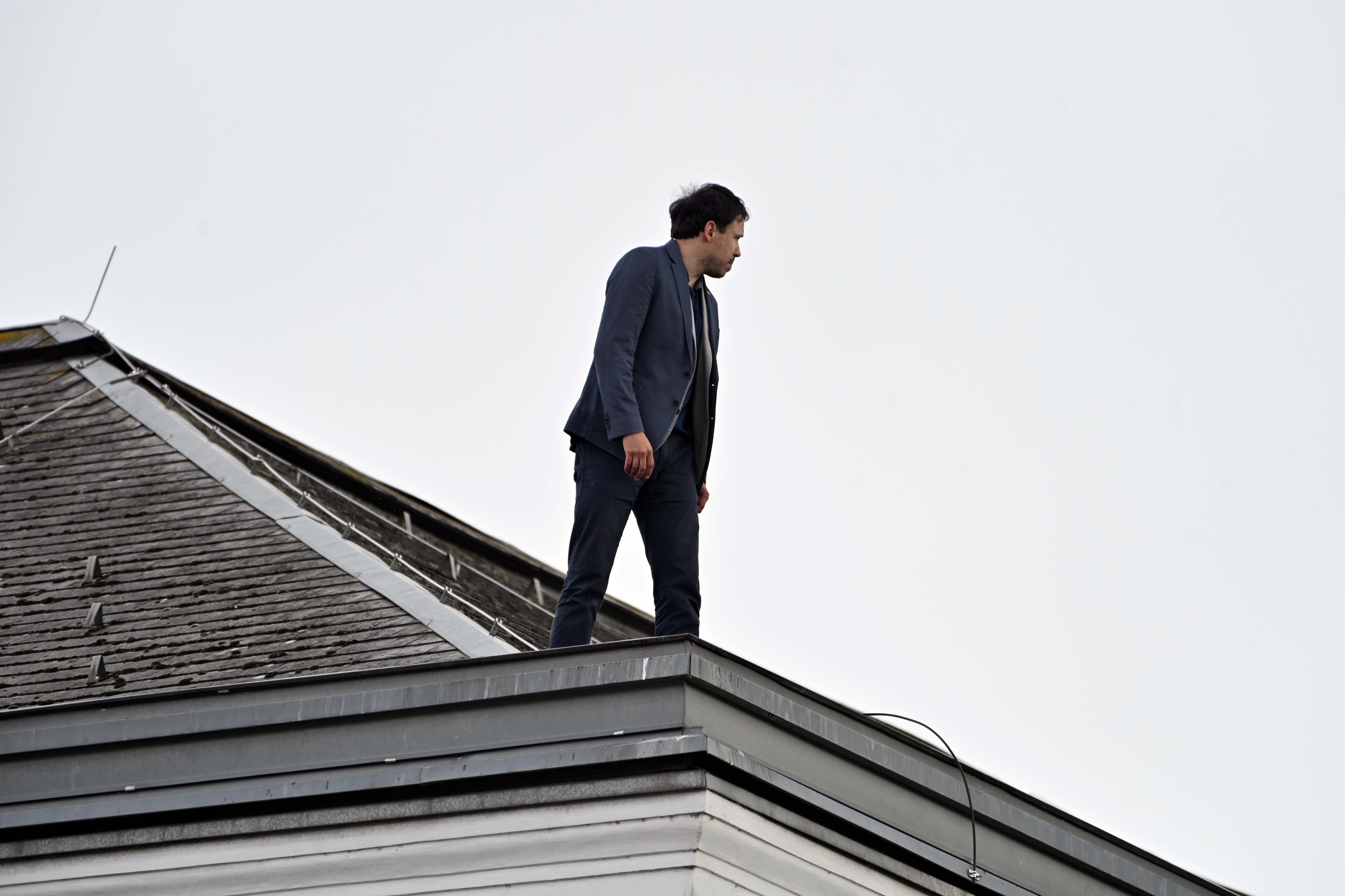 Zagrozil je tudi, da bo s strehe skočil. Pred parlamentom je bilo več policijskih patrulj, gasilci in reševalno vozilo, a je poslanec nato ob pomoči gasilcev s strehe sestopil. Odpeljalo ga je reševalno vozilo, policija pa je o dogajanju sporočila: