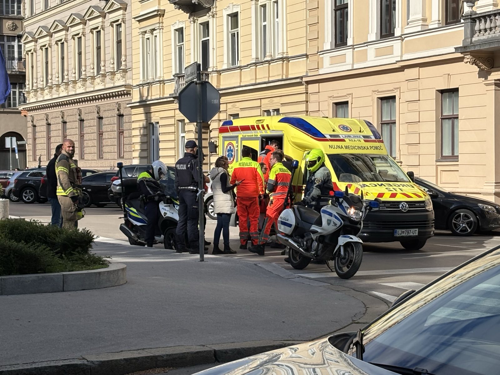 "Danes, okoli 16.30, smo bili obveščeni, da se na strehi objekta v centru Ljubljane nahaja oseba. Takoj je stekla policijska intervencija, na kraj pa so bile napotene tudi druge intervencijske službe. Z veliko mero potrpežljivosti, strokovnim posredovanjem in v sodelovanju z drugimi intervencijskimi službami, so policisti uspeli osebo umakniti na varno in so jo predali zdravstvenemu osebju. V intervenciji ni bil nihče poškodovan. Policisti bodo v nadaljevanju preverjali vse okoliščine dogodka in o tem obveščali pristojne službe."