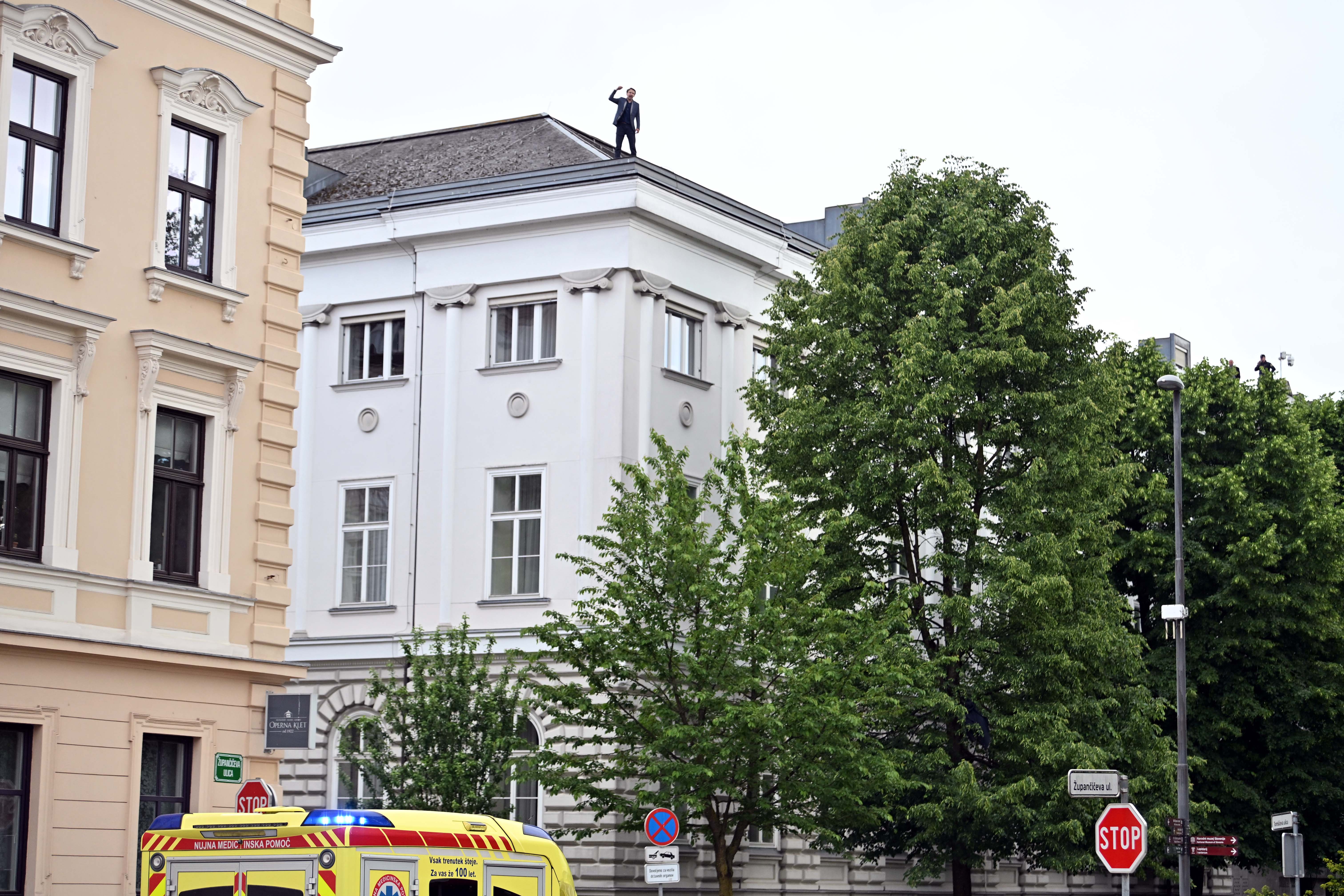Zaradi poslanca, ki je stal na strehi državnega zbora, je pred parlamentom potekala intervencija. Na strehi je namreč stal poslanec in s strehe govoril, da ne obsoja nikogar, niti premierja Roberta Goloba, a po njegovem mnenju "ni prav, kar delajo s to državo".